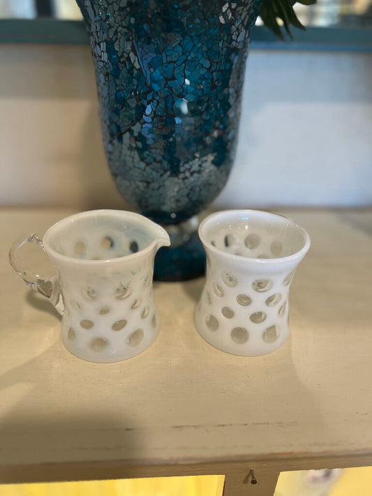 Fenton Coin Dot Sugar and Creamer Opalescent