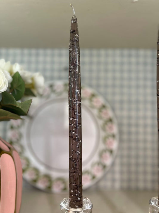 Vtg. Lucite Smoked Candlesticks With Silver Flakes