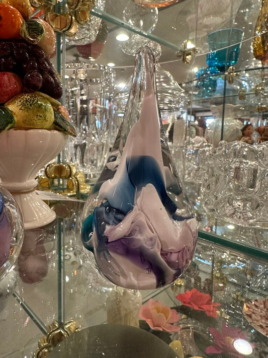 Signed Teardrop Art Glass Ring Holder/Paperweight