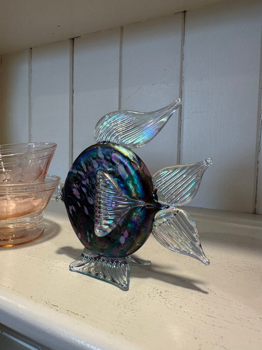Iridescent Hand-blown Art Glass Fish Figurine