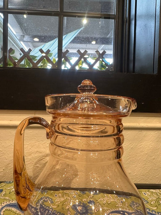 Vintage 1930's Dunbar Glass Art Deco Stacked Rings Pink Depression Pitcher w/lid