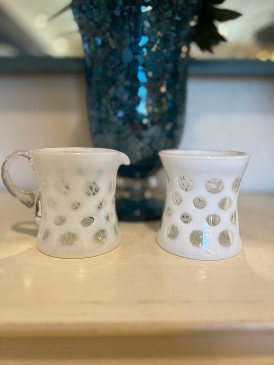 Fenton Coin Dot Sugar and Creamer Opalescent
