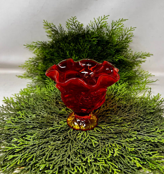Vintage Viking Hand Made Amberina Glass Candy Dish