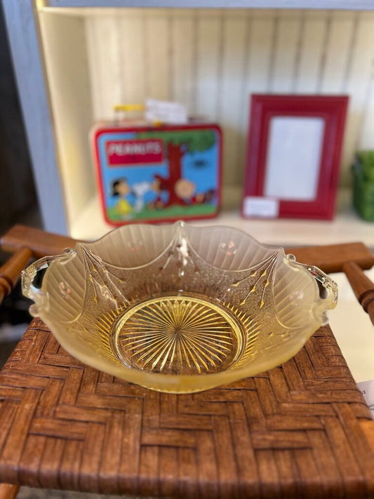 Vintage Glass Bowl With Handle's Hand Painted Flowers