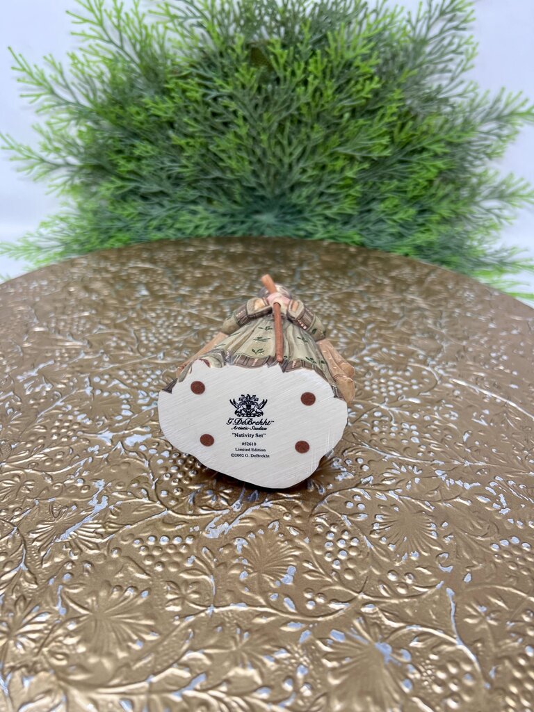 9 piece G. DeBrekht Artistic Studios "Nostalgic Nativity" set. Set comes with Joseph, Mary, Baby Jesus, 3 wise men, a shepherd and 2 animals. Each piece of the nativity set is precisely carved and painted with warm, neutral colors.