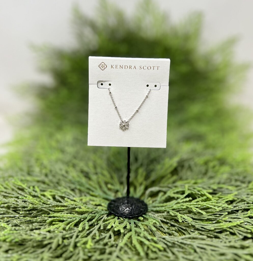 NEW with tags Kendra Scott Necklace. Necklace is silver tone color with a small circular snowflake pendent made with clear rhinestones. Necklace has an adjustable length and comes with original bag.